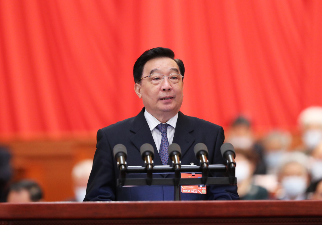 3月5日,第十三届全国人民代表大会第五次会议在北京人民大会堂开幕。大会主席团常务主席、执行主席栗战书主持大会。新华社记者 黄敬文 摄