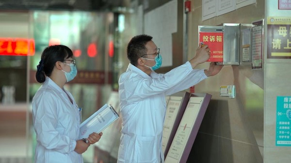 国庆期间,曲靖市马龙区中医院纪检委员坚守岗位,及时搜集群众就医的意见建议,不断完善服务,带来更便捷的就医体验。(方俊 摄)