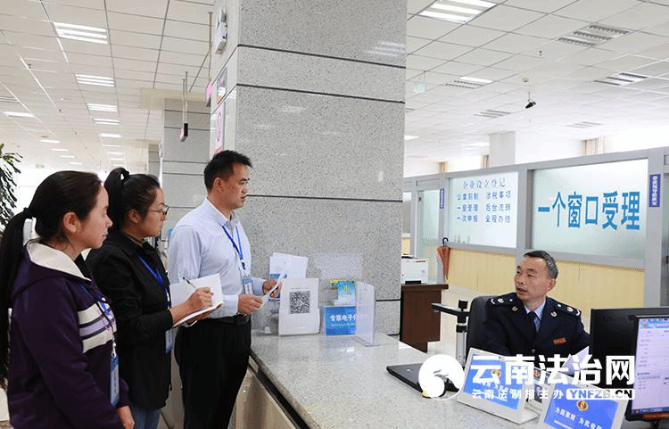 图为工作专班到腾冲市政务服务中心对政府采购“清源”促营商环境优化进行监督检查。 通讯员 段玉环 摄