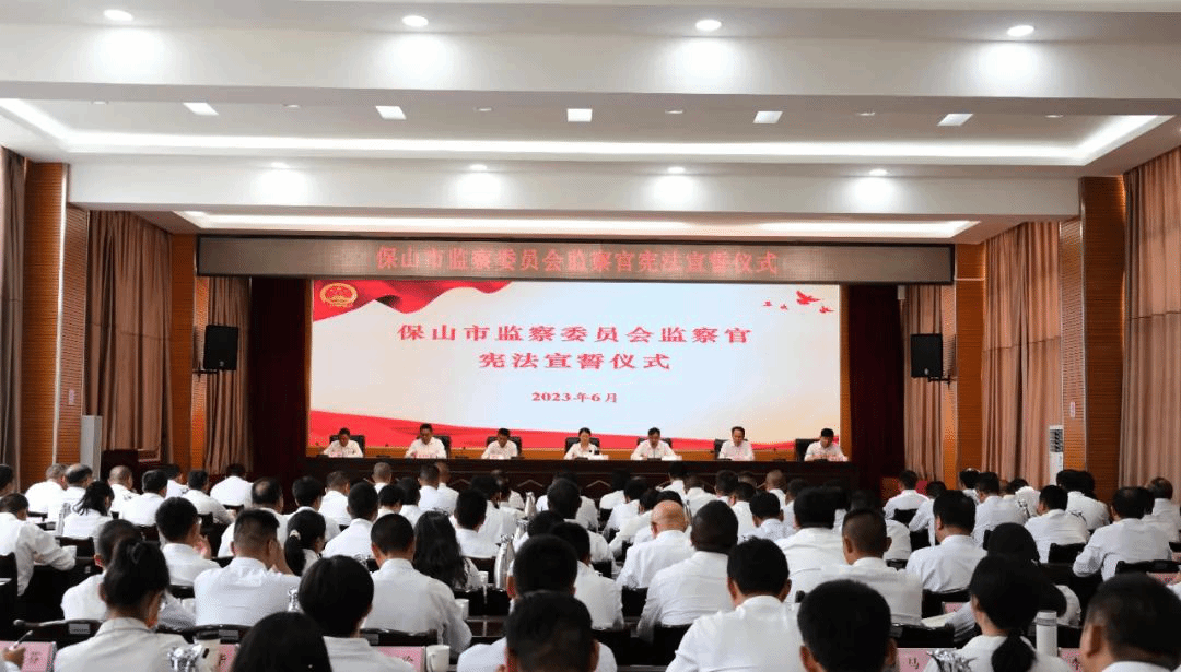 6月2日,保山市监察委举行监察官等级首次确定宪法宣誓仪式。市委常委、市纪委书记、市监委主任,二级高级监察官刘云娥领誓并讲话。