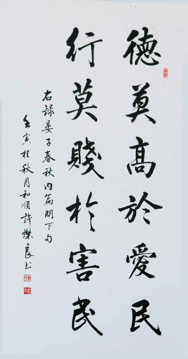 社区居务监督委员会主任书法作品《德莫高于爱民 行莫贱于害民》