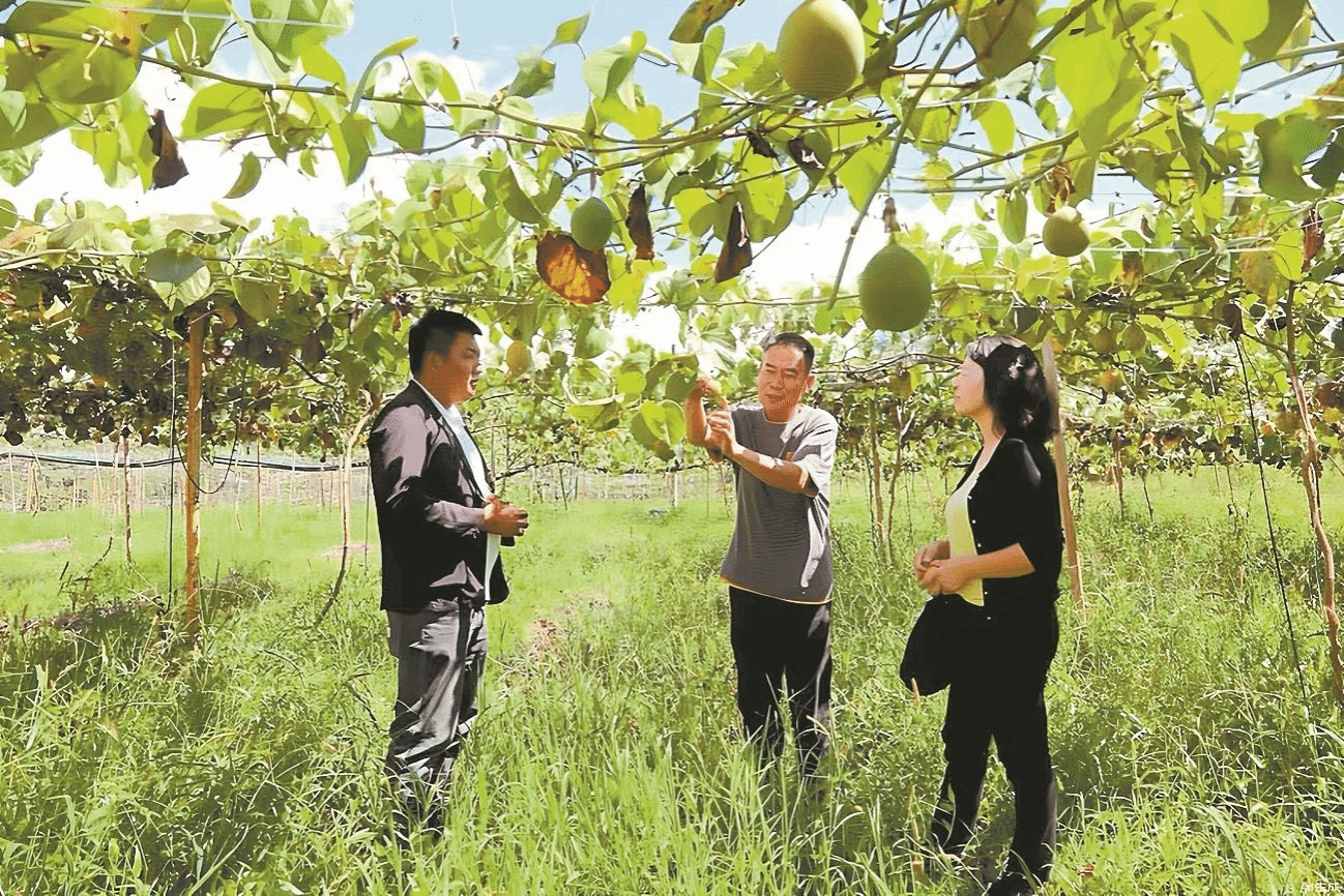 凤庆县纪委监委聚焦惠民政策和措施落实,强化监督保障执行,推动惠民政策落地见效。图为凤庆县纪检监察干部在该县某热情果种植基地走访督查,以监督保障乡村产业发展。 (通讯员 杨成菊 摄)