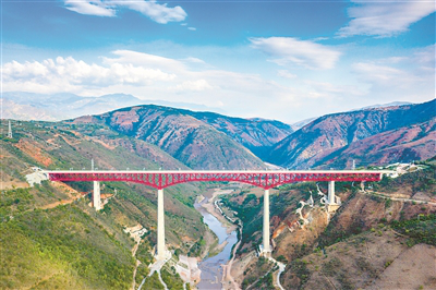 近年来,“中国之治”展现出令世界惊叹的能力和效率。去年12月按期交付通车的中老铁路投运以来客货运输成绩亮眼,成为高质量共建“一带一路”的标志性工程。图为云南省元江哈尼族彝族傣族自治县中老铁路元江特大桥。(图片来源:视觉中国)