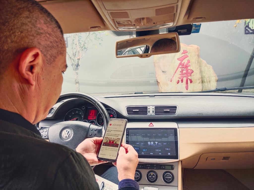 纪检监察干部通过学习强国APP进行学习。(王龙芹 摄)