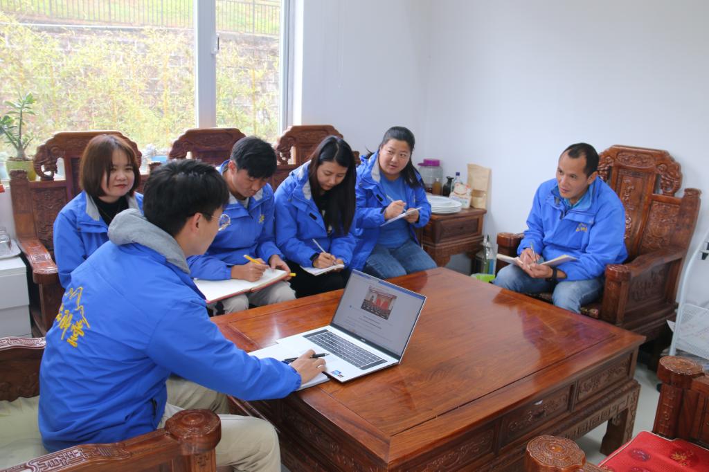龙陵县纪委监委第二党支部第二党小组通过党小组会进行讨论学习。(王龙芹 摄)