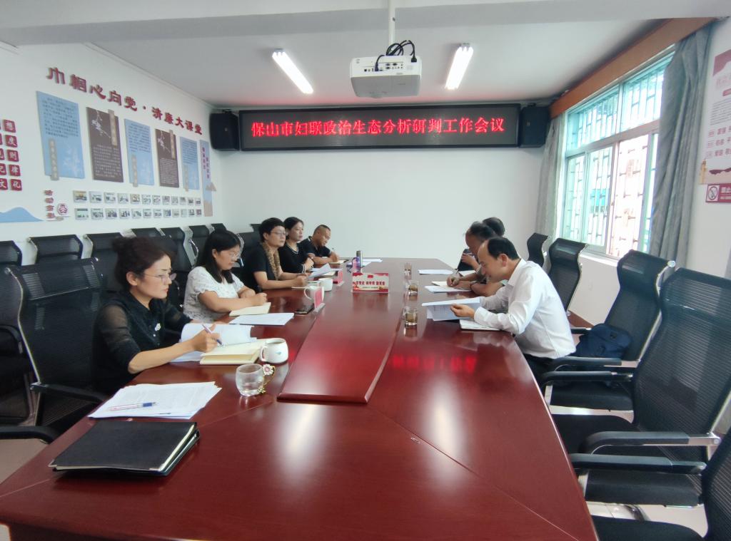 9月15日,保山市妇联政治生态分析研判工作会议召开,市纪委市监委第四监督检查室、派驻市委办纪检监察组、市妇联领导班子、部(室)负责人及有关人员参加了会议,派驻市委办纪检监察组组长主持会议。
