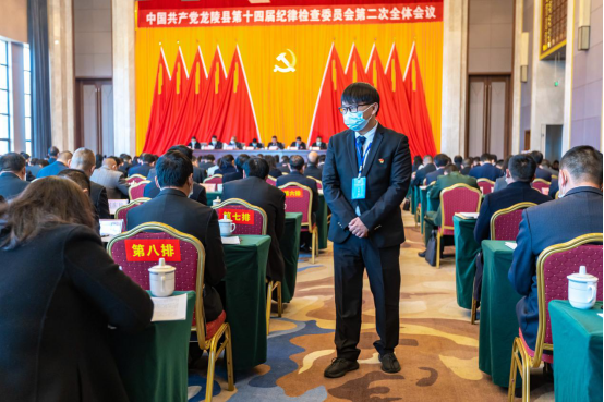图为工作人员在进行会纪监督。(王龙芹 摄)