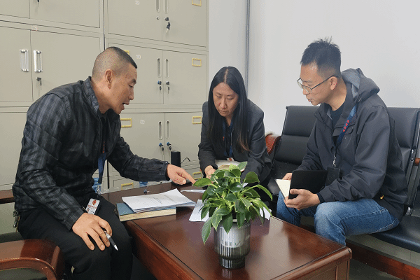 图为区委巡察组与纪检监察室负责人在巡察期间进行问题线索分析研判。(施荔潇 摄)