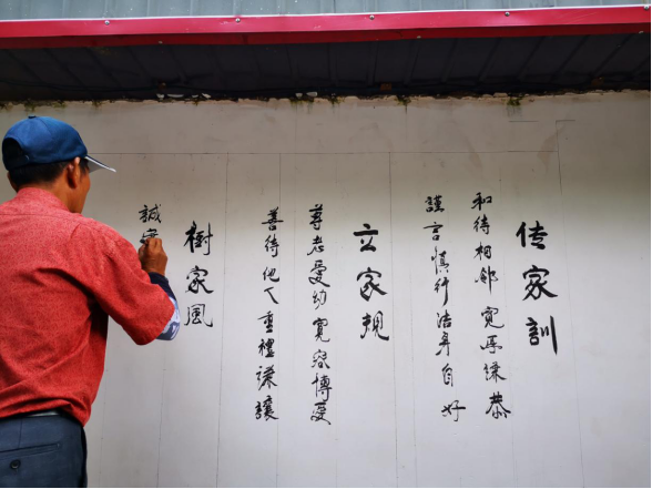 “‘传家训:和待相邻,宽厚谦恭;谨言慎行,洁身自好……’这是我请乡贤工作站人一位退休老干部帮我写的家风家训,我要让子孙后代将之传承下去。”近日,昌宁县耈街乡挖沙村大平坦村民小组张大爹指着写在家门口的家风家训,激动地说道。如今,漫步在大平坦村的村村寨寨,你会发现很多家庭都在显眼处或粘贴或题写着家风家训。