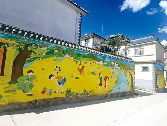 春天纸鸢飞、夏日钓鱼忙、秋来摘红柿、冬到炮仗响……墙体画的人物惟妙惟肖、生动活泼,风景以小见大、引人入胜。300平方米的墙体画融入了四季的儿时记忆、现代生活方式、生态文明、农耕文化、市域社会治理等多种元素。据社区党总支书记、居委会主任赵建生介绍,文化墙的绘制是社区尝试打造“巷道文旅”的第一步,既结合了基础设施实际,又整合了位置较好的两家餐馆。社区联合网格单位保山市公路局共同出资6.2万元,历时近两个月才最终完成这些墙体画。
