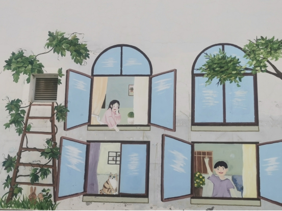 文化墙在装点社区风景的同时,也促发了居民思维方式的转变和文明素养的提升。永乐小区的一家农家乐里,52岁的老板娘刁丽正在抖音里分享餐厅布景和当天的特色菜,院墙上绘制的沙漠植物和向日葵色调明快、引人驻足,既美化了庭院,更为开了13年的老店引来了大量的客流。