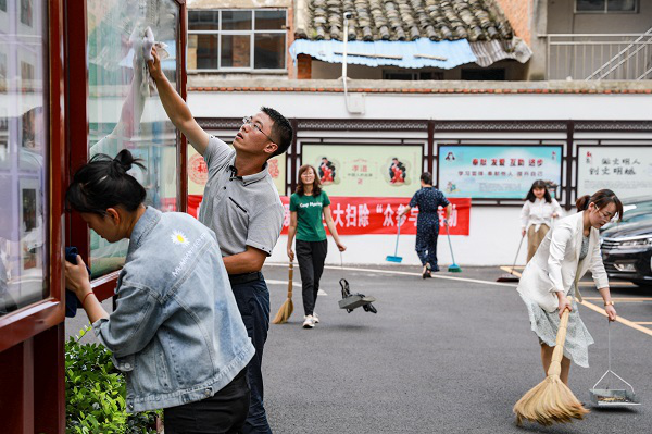 龙陵县纪委监委以文明实践为依托,以志愿服务为载体,到包保社区开展卫生大扫除活动,用实际行动助力爱国卫生运动“7+1”专项行动。(王龙芹 摄)