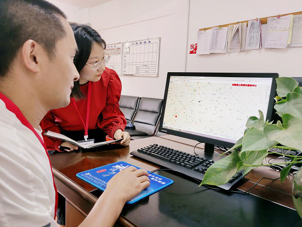 龙陵县纪委监委监督检查组到县机关事务管理服务中心,通过综合车辆管理平台调取公车行驶轨迹和数据,对各单位公车管理和使用情况开展监督检查,坚决遏制“车轮上的腐败”。(王龙芹 摄)