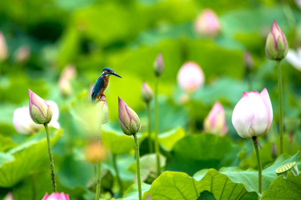 翻空白鸟时时见,照水红蕖细细香。(杨建成 摄)