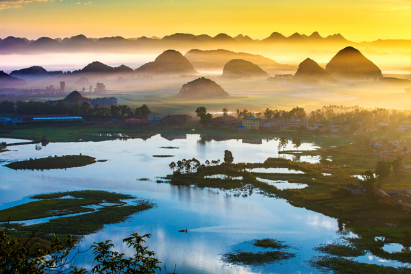 山和水的融合,是静谧和灵动的搭配,是单调与多彩的结合,造就了最美的风景。(李越利 摄)
