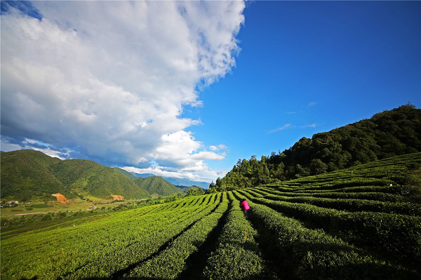 采茶姑娘手握收获的希望,脸上洋溢着笑容。清风拂面,丰收在望。(刘正凡 摄)