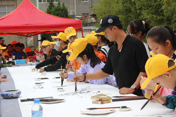 祥云县的孩子们走上街头参加“书画长卷游园”,在一笔一画间感受着传统文化的韵味。(罗银章 摄)
