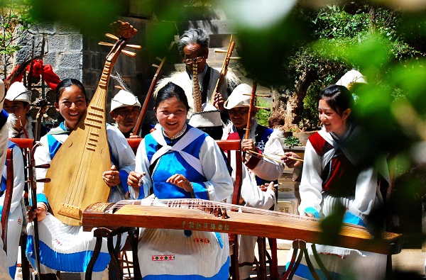 丽江独特的纳西族东巴文化和纳西古乐,吸引着中外游客。(赵庆祝 摄)