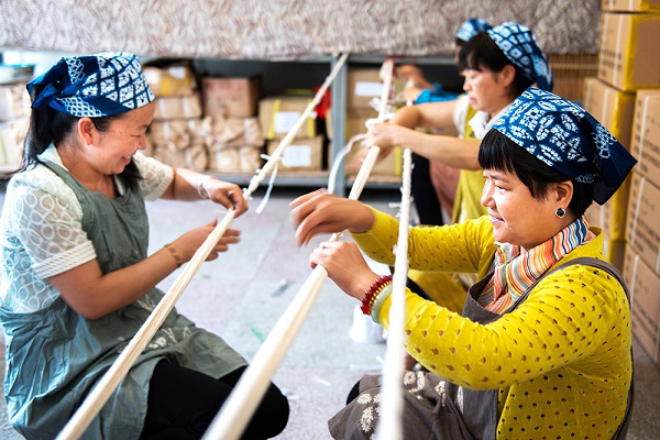 蜡染图案丰富,色调素雅,清新悦目,常被用来制作服饰和各种生活用品。宜良县开展蜡染培训,让更多妇女走出来,为家乡代言,为自己喝彩。(柴保辉 摄)