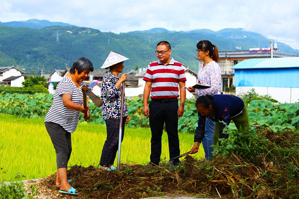 泸西县纪检监察干部到田间地头向农户了解农资供应、农技指导、农业生产补贴等情况,有针对性地督促相关职能部门切实履职,保障粮食生产。(赵仕会 摄)