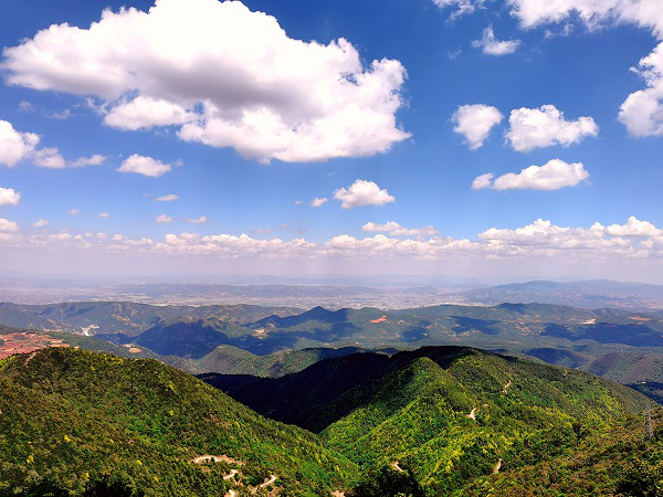 重阳节之际,登高远眺,放眼望去,群山都落在脚下,近浓远淡,延绵至天边。(张军 摄)