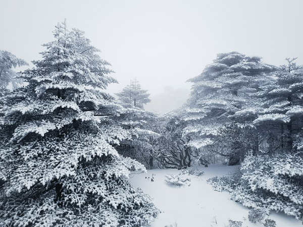 大寒天,一场冬雪为这片松林穿上了最美的冬装。银装素裹、苍翠林立,放眼望去,俨然是一派“北国风光”。(何佳玲 摄)
