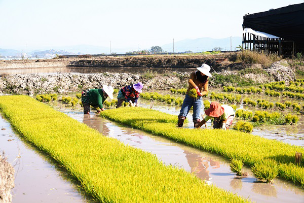 农家少闲人,春来分外忙。勐海县勐混坝子里,农人育下的秧苗在春分长成,傣家人乘着时节拔苗耕种,为一年的收成种下希望。(陶玲红 摄)