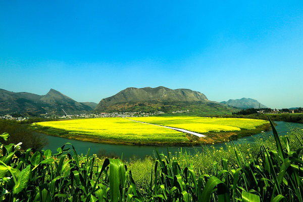 村庄外,油菜花开了。远山如黛,整个村庄朦胧在浪漫的情调里。勤劳的农民伯伯牵着大水牛,走在溢满花香的田埂上,开始播种一年的希望。(李恒宇 摄)