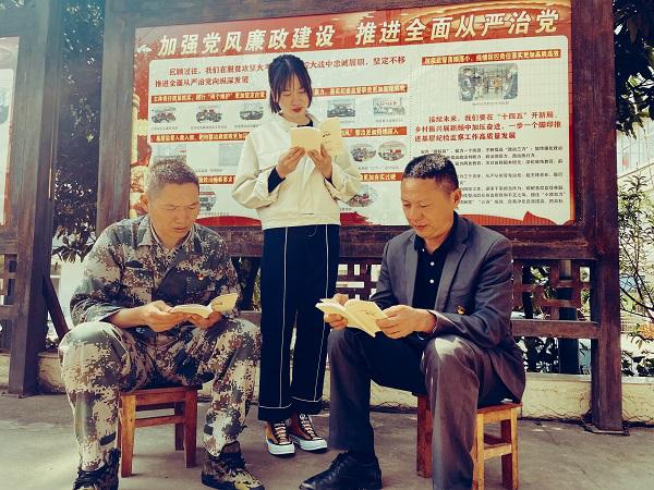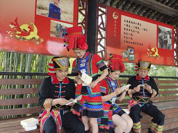 阿昌族群众学习《云南少数民族廉洁文化知与践》。(王龙芹 摄)