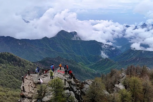 游客在位于陕西宝鸡的秦岭太白山景区游览(2025年5月27日摄)。新华社记者 邹竞一 摄