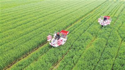 粮食安全的主动权必须牢牢掌控在自己手中,中国人的饭碗必须牢牢端在自己手里。图为清明期间,在浙江省湖州市长兴县和平镇回车岭村,种植户驾驶农机在田间劳作(无人机照片)。新华社发(吴拯摄)
