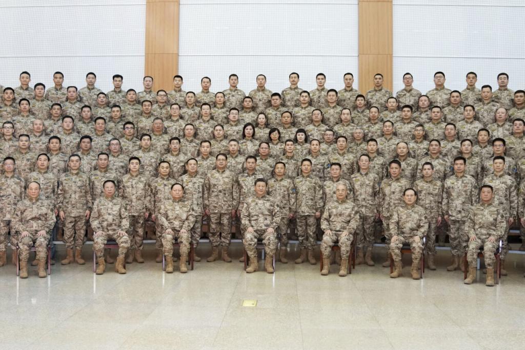 1月28日,中华民族传统节日春节即将来临之际,中共中央总书记、国家主席、中央军委主席习近平到中部战区视察慰问,代表党中央和中央军委,向全体人民解放军指战员、武警部队官兵、军队文职人员、民兵预备役人员致以诚挚问候和新春祝福。这是习近平亲切接见中部战区官兵代表,同大家合影留念。 新华社记者 李刚 摄