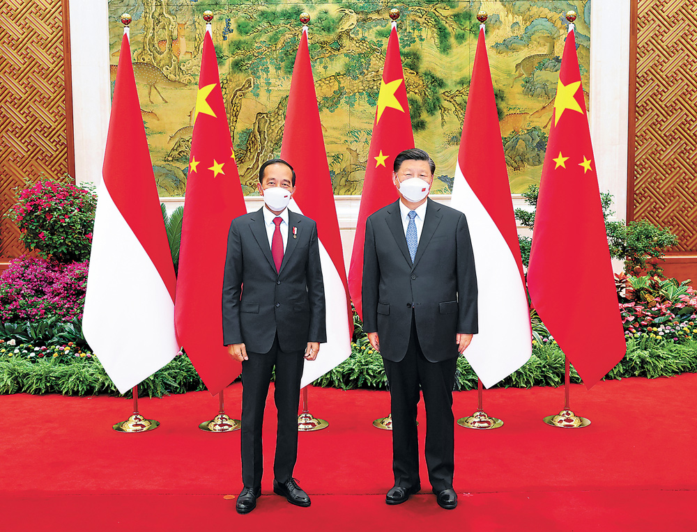 习近平指出,你是北京冬奥会后中方接待的首位外国元首,充分体现了双方对发展中印尼关系的高度重视。近年来,在我们共同引领下,中印尼关系蓬勃发展,彰显强劲韧性和活力。双方战略互信日益巩固,政治、经济、人文、海上合作“四轮驱动”合作格局不断深化,在维护地区和平稳定、促进世界团结合作方面展现担当,积极有为,树立了发展中大国联合自强、互利共赢的典范。事实证明,发展好中印尼关系不仅符合两国共同长远利益,也在地区和全球层面产生积极深远影响。当前,中国人民正向着全面建成社会主义现代化强国的第二个百年奋斗目标迈进,印尼人民也正为实现2045年建国百年目标积极打拼。我愿同你一道,继续从战略高度和长远角度引领中印尼关系行稳致远,更好造福两国人民,为地区和世界和平稳定作出更大贡献。