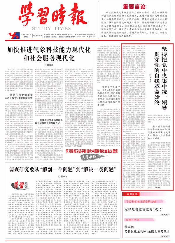 2024年3月27日,《学习时报》头版刊发云南省委常委、省纪委书记、省监委主任冯志礼署名文章:《坚持把党中央集中统一领导贯穿党的自我革命始终》。