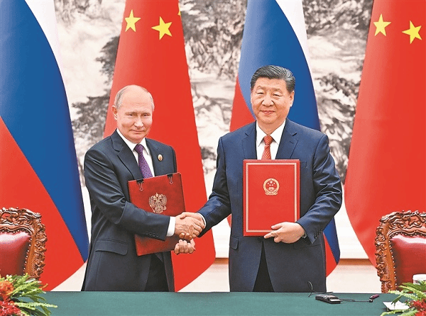 普京表示,俄中两国政府间合作机制运作良好,两国经贸、农业、工业、能源、互联互通等领域合作稳步发展。俄中关系的建立和发展,基于睦邻友好、相互尊重、助力各自国家发展等原则,经受住了各种考验。今天双方签署系列合作文件,表明双方继续深化拓展互利合作的决心。俄方愿同中方落实好《2030年前俄中经济合作规划》,办好今明年“俄中文化年”活动,加强欧亚经济联盟同共建“一带一路”倡议对接。明年将迎来世界反法西斯战争胜利80周年,俄中双方将举行庆祝活动。俄方赞赏中方在重大国际地区事务中秉持客观公正立场,愿同中方继续密切战略协作,坚定相互支持,促进世界多极化和国际关系民主化进程,推动俄中全面战略协作伙伴关系取得更多成果。