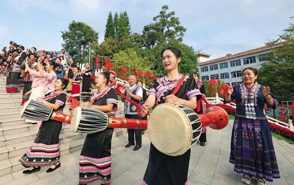2024年9月25日,各族群众身着盛装相聚普洱民族团结园广场,载歌载舞,迎接习近平总书记的重要回信,共庆这一无比幸福的历史性时刻。云南日报摄影部供图