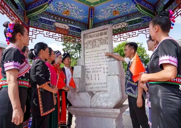 回望历史,民族团结誓词碑,既是一座历史丰碑,更是一条正确道路,沿着这条路,我们书写了民族团结进步的生动篇章;展望未来,走好这条路,中国式现代化的光明前景催人奋进。我们要在习近平总书记的领航掌舵下,在党中央坚强领导下,深入贯彻党的二十大和二十届三中全会精神,牢记誓言、不忘初心、接续奋斗,推动民族团结进步示范区建设不断取得新进展,为建设牢不可破的中华民族共同体发挥云南作用、作出云南贡献!