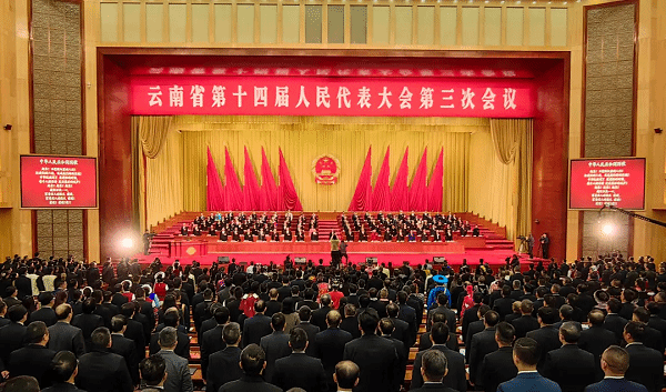 1月18日,云南省第十四届人民代表大会第三次会议在昆明云南海埂会堂开幕。杨峥 雷桐苏 陈飞 黄兴能 高吴双 摄