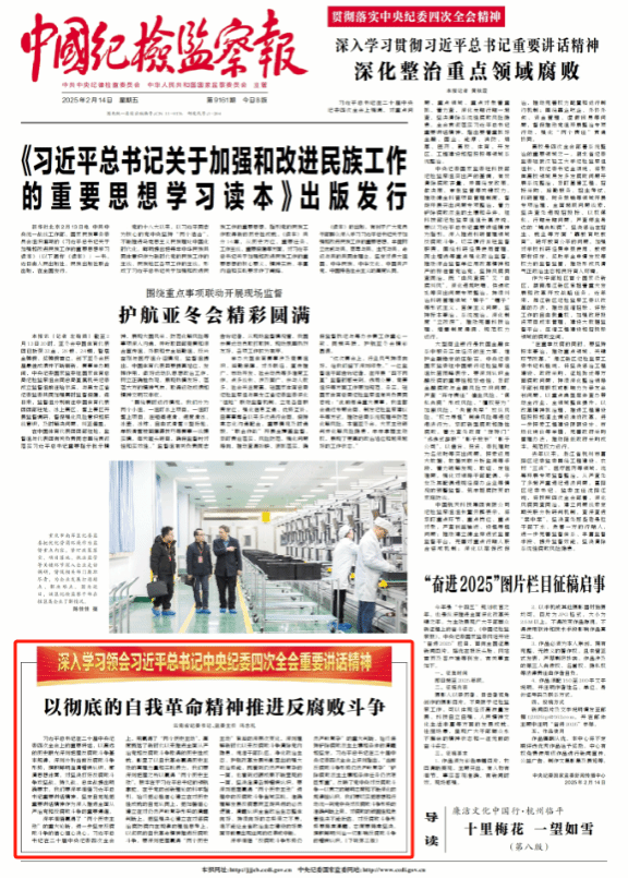 2025年2月14日,《中国纪检监察报》头版刊发云南省委常委、省纪委书记、省监委主任冯志礼署名文章:《以彻底的自我革命精神推进反腐败斗争》。