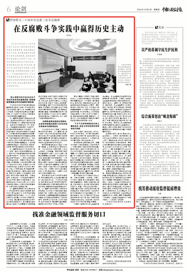 2024年12月5日,《中国纪检监察报》刊发云南省委常委、省纪委书记、省监委主任冯志礼署名文章:《在反腐败斗争实践中赢得历史主动》。