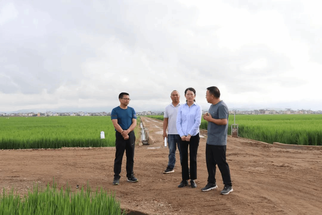 刘云娥到青华海现代农业科技产业园水稻种植基地详细了解耕地复垦收益、农旅融合和一二三产业融合发展等情况。