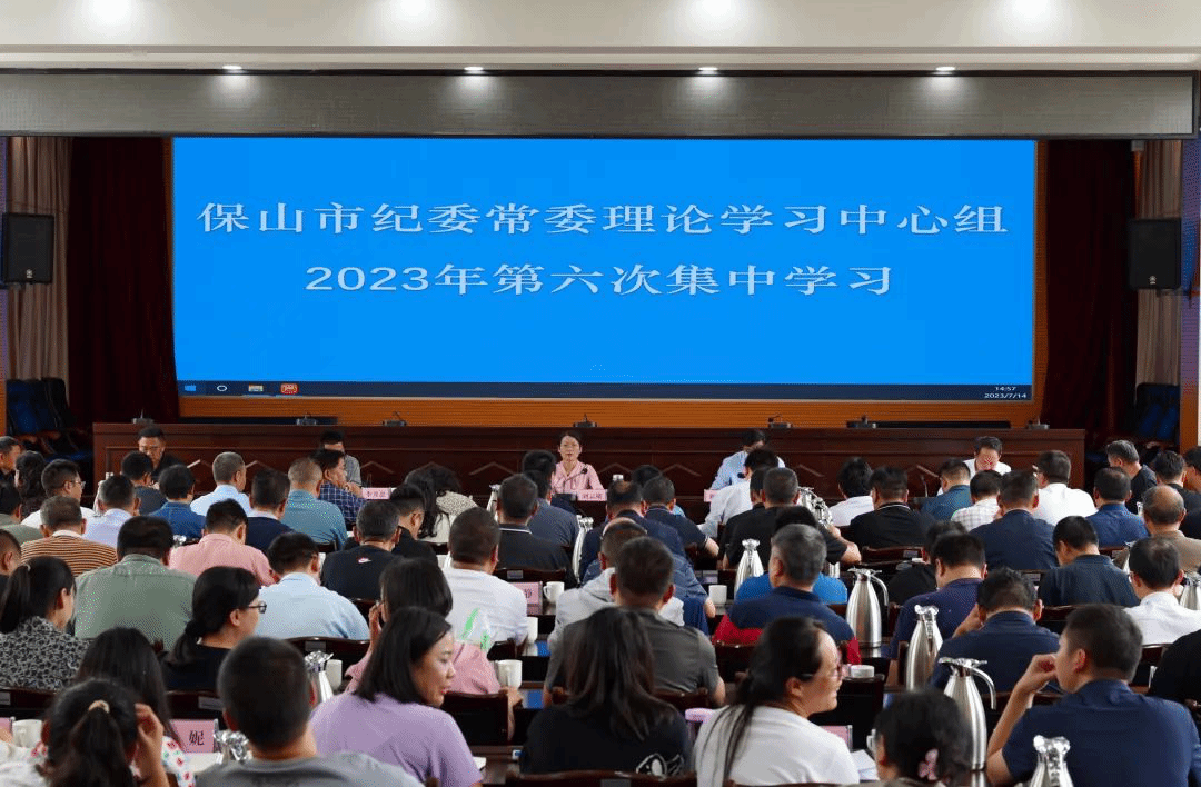 7月14日,市纪委常委理论学习中心组举行2023年第六次集中学习,深入学习习近平总书记关于全面从严治党的重要论述,聚焦市委市政府“3815”战略发展目标,不断深化作风革命效能革命,扎实开展“躺平式”干部专项整治,教育引导全市纪检监察干部遵规守纪、担当实干,推动保山纪检监察工作高质量发展。