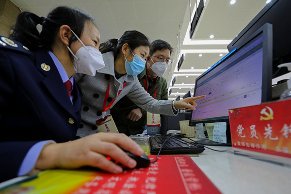 云南省陆良县纪委监委运用信息技术,深挖细查违规吃喝、违规收送礼品礼金、违规发放津补贴或福利、公车私用等“四风”问题。图为近日,该县纪委监委干部借助大数据平台摸排问题线索。王勇 摄