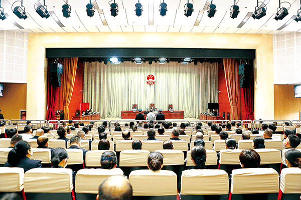 图为4月21日,兰州市中级人民法院开庭审理柳丰德受贿、行贿案。 (兰州市中级人民法院供图)