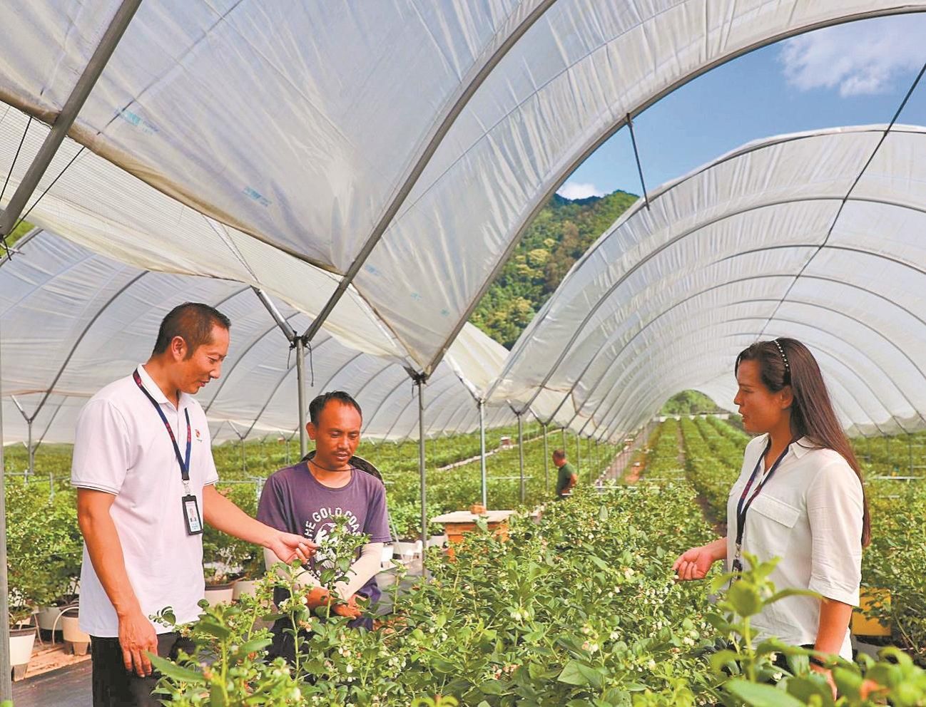 墨江哈尼族自治县纪委监委将护航特色产业发展作为监督重点,统筹“室组地”监督力量,围绕惠农政策落实、农业技术服务以及补贴资金发放等关键环节开展嵌入式监督,以精准监督助力“一村一品”特色产业发展。图为墨江县纪检监察干部日前在该县鱼塘镇蓝莓基地了解相关情况。 (通讯员 李丽清 摄)