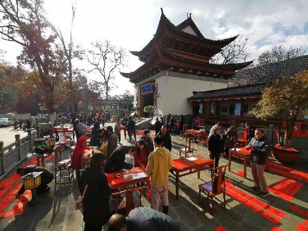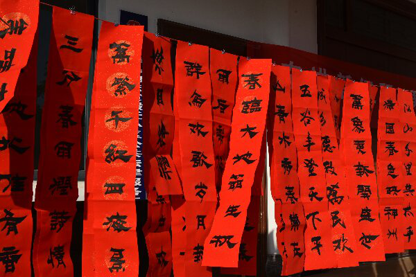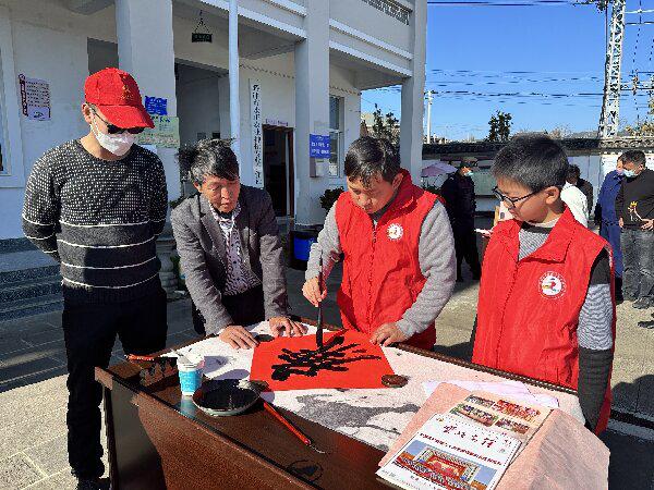 临近春节,保山市隆阳区纪委监委组织纪检监察干部到太保森林公园开展“写春联 送廉礼”主题党日活动。图为,该区纪委监委有书法特长的党员干部为群众现场书写对联,送上新春祝福。(章文华 摄)