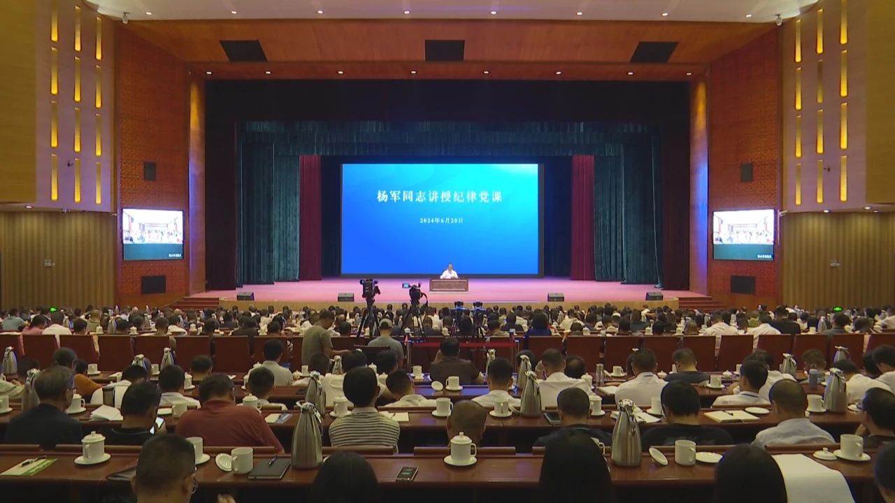 6月20日,市委书记杨军讲纪律党课时强调,要把学习习近平总书记的重要论述与学习《中国共产党纪律处分条例》贯通起来,一体领悟、一体把握、一体贯彻,完整准确全面掌握“六项纪律”的主旨要义和规定要求,自觉把“六项纪律”融入灵魂深处、化为日常习惯,努力在学纪、知纪、明纪、守纪上取得新进步。