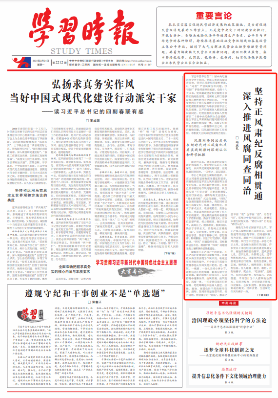2025年2月24日,《学习时报》头版刊发云南省委常委、省纪委书记、省监委主任冯志礼署名文章:《坚持正风肃纪反腐相贯通 深入推进风腐同查同治》。
