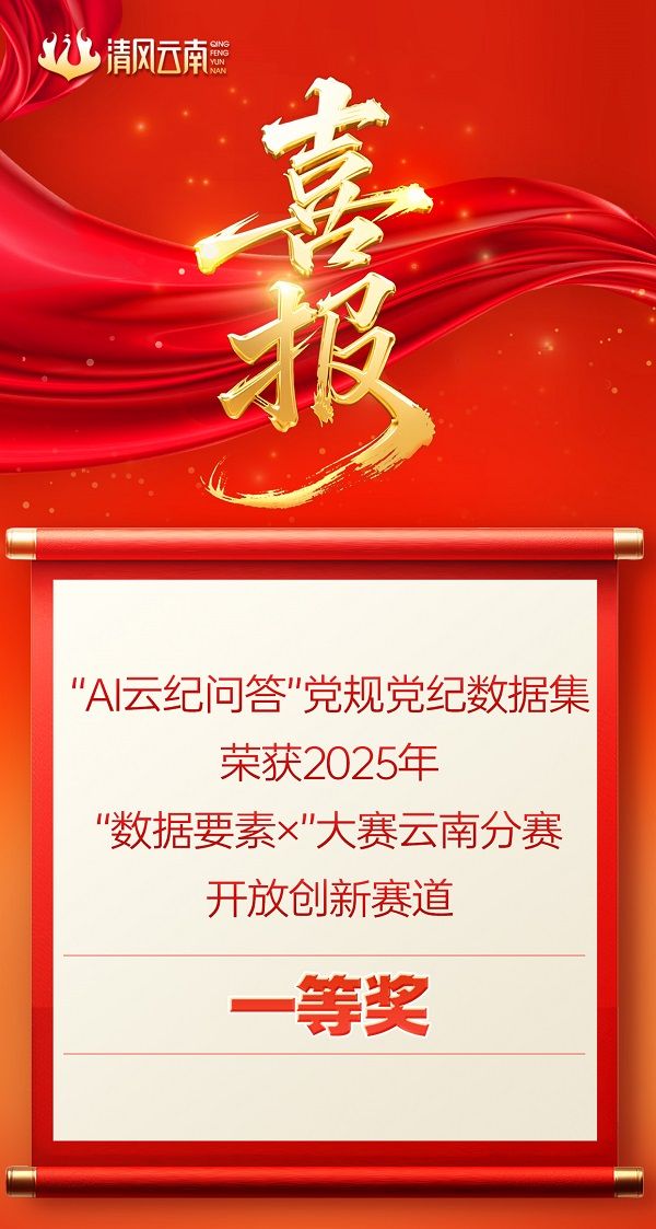 10月13日,2025年“数据要素×”大赛云南分赛颁奖仪式举行,由云南省纪委监委建设的“AI云纪问答”党规党纪数据集项目荣获2025年“数据要素×”大赛云南分赛开放创新赛道一等奖,并获推荐参加2025年“数据要素×”大赛全国总决赛。