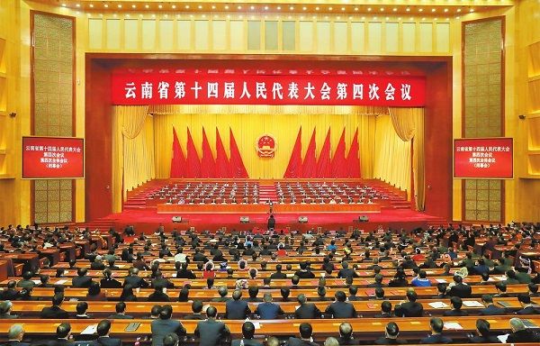 2月1日上午,云南省第十四届人民代表大会第四次会议在昆明闭幕。 本报记者 杨峥 雷桐苏 陈飞 黄兴能 王毅 摄